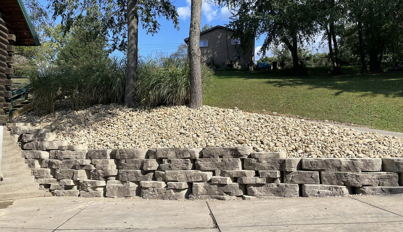 Cargan installs segmental retaining wall blocks (like VERSA-LOK®), natural stone, or concrete options, depending on your design and budget.